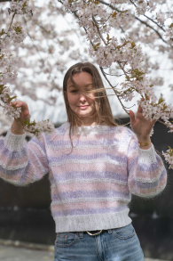 So finden Sie die passende Größe: Messen Sie ein Kleidungsstück aus, das Ihnen gut passt, und vergleichen Sie die Maße mit der Anleitung. Entscheiden Sie sich basierend auf der Brustweite des Rumpfteils für eine Größe. Die Länge des Rumpfteils sowie der Ärmel kann nach Belieben angepasst werden, aber denken Sie daran, zusätzliches Garn zu bestellen, wenn Sie die Länge verändern möchten!