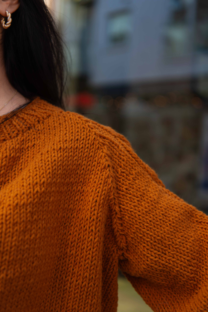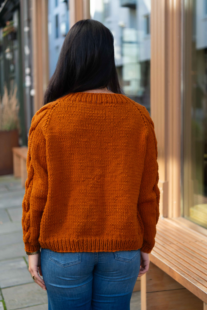 So finden Sie die passende Größe: Messen Sie ein Kleidungsstück aus, das Ihnen gut passt, und vergleichen Sie die Maße mit der Anleitung. Entscheiden Sie sich basierend auf der Brustweite des Rumpfteils für eine Größe. Die Länge des Rumpfteils sowie der Ärmel kann nach Belieben angepasst werden, aber denken Sie daran, zusätzliches Garn zu bestellen, wenn Sie die Länge verändern möchten!