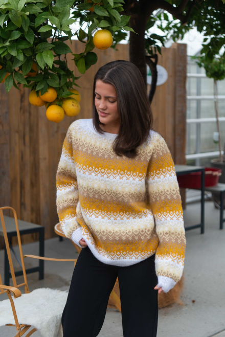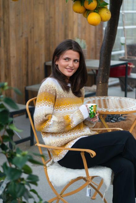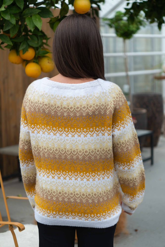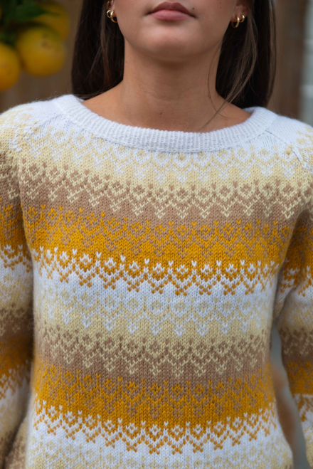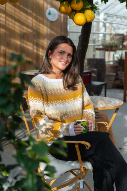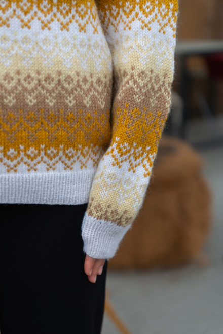 So finden Sie die passende Größe: Messen Sie ein Kleidungsstück aus, das Ihnen gut passt, und vergleichen Sie die Maße mit der Anleitung. Entscheiden Sie sich basierend auf der Brustweite des Rumpfteils für eine Größe. Die Länge des Rumpfteils sowie der Ärmel kann nach Belieben angepasst werden, aber denken Sie daran, zusätzliches Garn zu bestellen, wenn Sie die Länge verändern möchten!