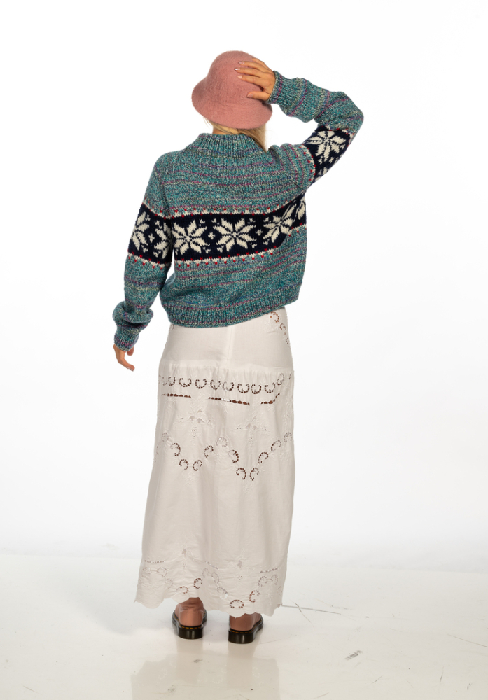 So finden Sie die passende Größe: Messen Sie ein Kleidungsstück aus, das Ihnen gut passt, und vergleichen Sie die Maße mit der Anleitung. Entscheiden Sie sich basierend auf der Brustweite des Rumpfteils für eine Größe. Die Länge des Rumpfteils sowie der Ärmel kann nach Belieben angepasst werden, aber denken Sie daran, zusätzliches Garn zu bestellen, wenn Sie die Länge verändern möchten!