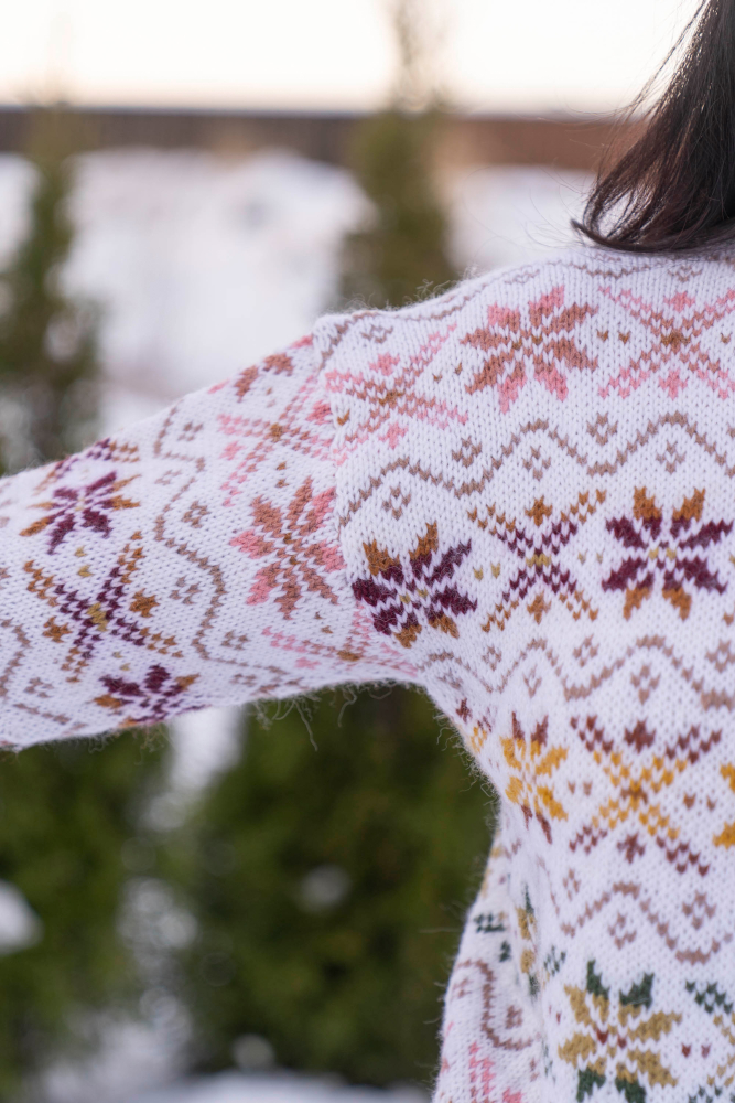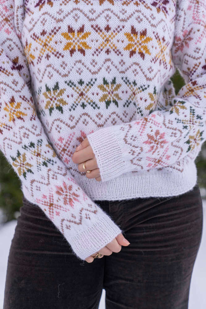 So finden Sie die passende Größe: Messen Sie ein Kleidungsstück aus, das Ihnen gut passt, und vergleichen Sie die Maße mit der Anleitung. Entscheiden Sie sich basierend auf der Brustweite des Rumpfteils für eine Größe. Die Länge des Rumpfteils sowie der Ärmel kann nach Belieben angepasst werden, aber denken Sie daran, zusätzliches Garn zu bestellen, wenn Sie die Länge verändern möchten!