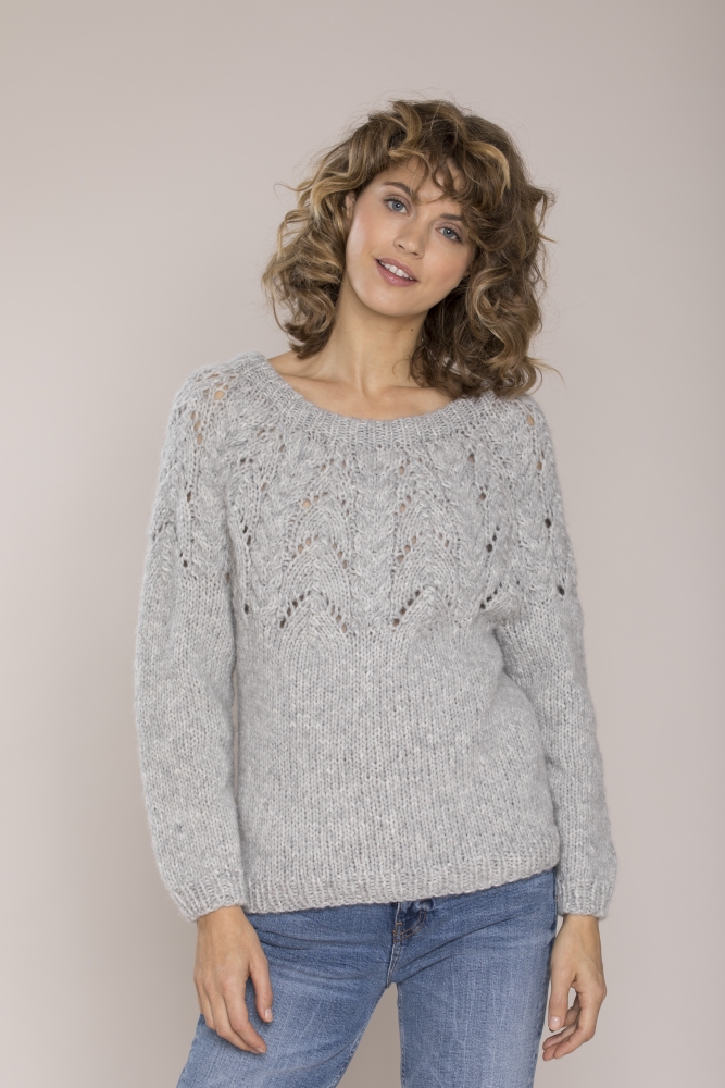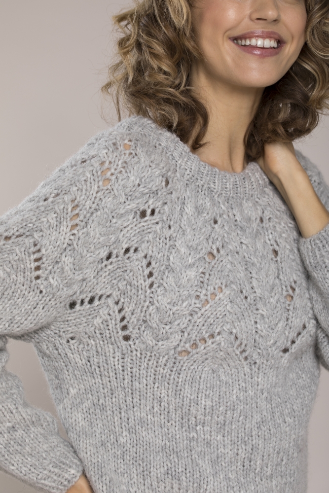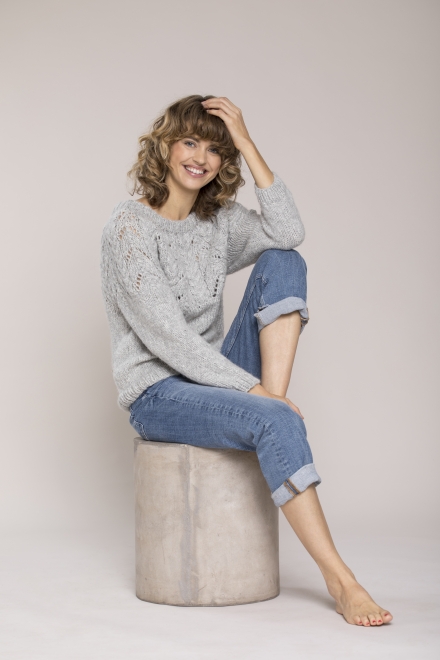 So finden Sie die passende Größe: Messen Sie ein Kleidungsstück aus, das Ihnen gut passt, und vergleichen Sie die Maße mit der Anleitung. Entscheiden Sie sich basierend auf der Brustweite des Rumpfteils für eine Größe. Die Länge des Rumpfteils sowie der Ärmel kann nach Belieben angepasst werden, aber denken Sie daran, zusätzliches Garn zu bestellen, wenn Sie die Länge verändern möchten!