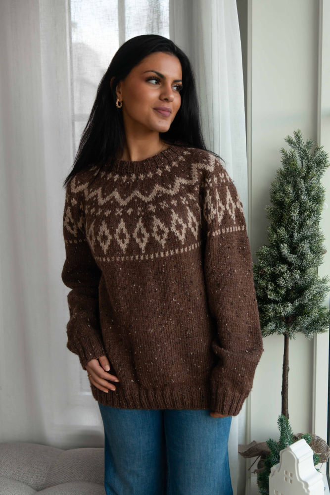 So finden Sie die passende Größe: Messen Sie ein Kleidungsstück aus, das Ihnen gut passt, und vergleichen Sie die Maße mit der Anleitung. Entscheiden Sie sich basierend auf der Brustweite des Rumpfteils für eine Größe. Die Länge des Rumpfteils sowie der Ärmel kann nach Belieben angepasst werden, aber denken Sie daran, zusätzliches Garn zu bestellen, wenn Sie die Länge verändern möchten!