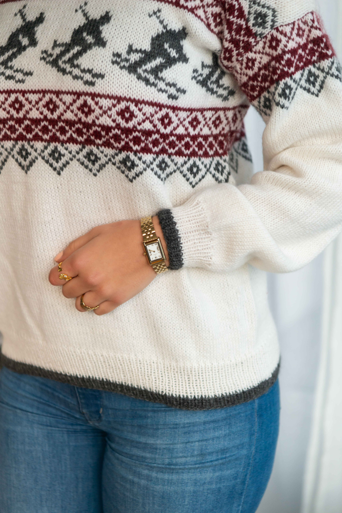 So finden Sie die passende Größe: Messen Sie ein Kleidungsstück aus, das Ihnen gut passt, und vergleichen Sie die Maße mit der Anleitung. Entscheiden Sie sich basierend auf der Brustweite des Rumpfteils für eine Größe. Die Länge des Rumpfteils sowie der Ärmel kann nach Belieben angepasst werden, aber denken Sie daran, zusätzliches Garn zu bestellen, wenn Sie die Länge verändern möchten!