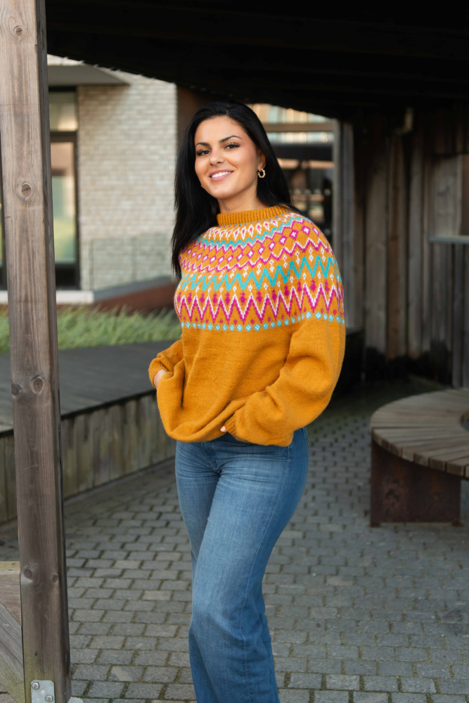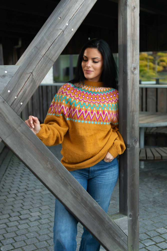 So finden Sie die passende Größe: Messen Sie ein Kleidungsstück aus, das Ihnen gut passt, und vergleichen Sie die Maße mit der Anleitung. Entscheiden Sie sich basierend auf der Brustweite des Rumpfteils für eine Größe. Die Länge des Rumpfteils sowie der Ärmel kann nach Belieben angepasst werden, aber denken Sie daran, zusätzliches Garn zu bestellen, wenn Sie die Länge verändern möchten!
