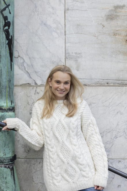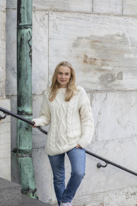 So finden Sie die passende Größe: Messen Sie ein Kleidungsstück aus, das Ihnen gut passt, und vergleichen Sie die Maße mit der Anleitung. Entscheiden Sie sich basierend auf der Brustweite des Rumpfteils für eine Größe. Die Länge des Rumpfteils sowie der Ärmel kann nach Belieben angepasst werden, aber denken Sie daran, zusätzliches Garn zu bestellen, wenn Sie die Länge verändern möchten!