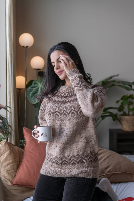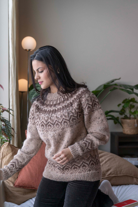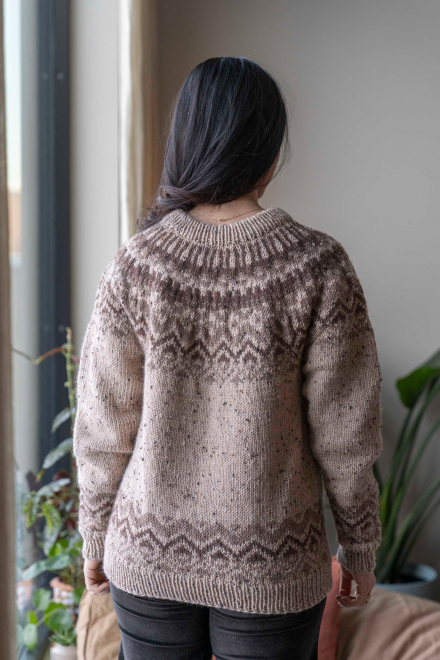 So finden Sie die passende Größe: Messen Sie ein Kleidungsstück aus, das Ihnen gut passt, und vergleichen Sie die Maße mit der Anleitung. Entscheiden Sie sich basierend auf der Brustweite des Rumpfteils für eine Größe. Die Länge des Rumpfteils sowie der Ärmel kann nach Belieben angepasst werden, aber denken Sie daran, zusätzliches Garn zu bestellen, wenn Sie die Länge verändern möchten!