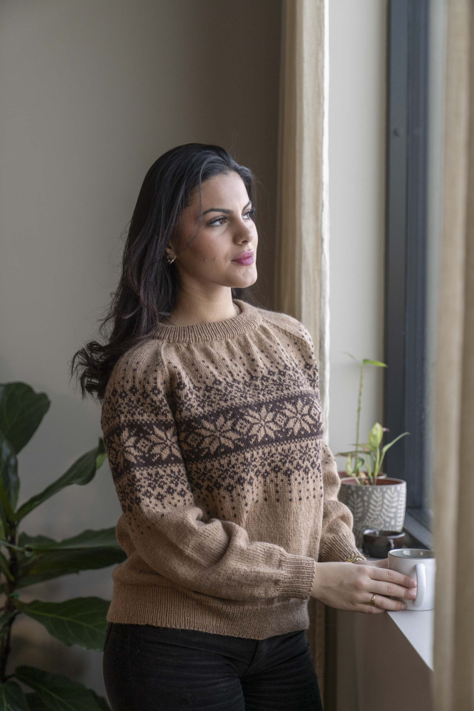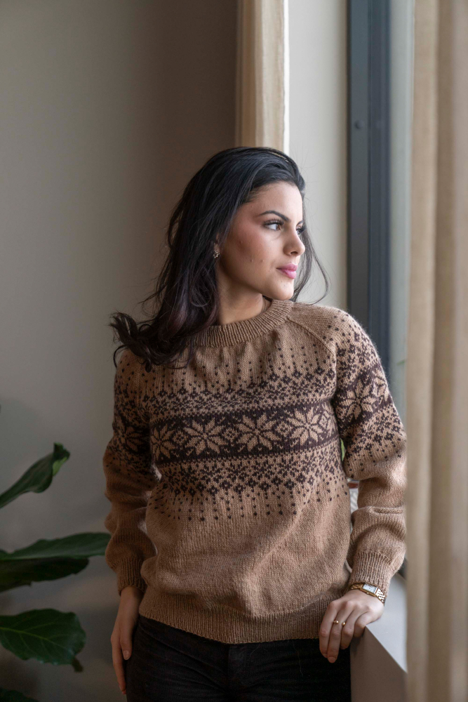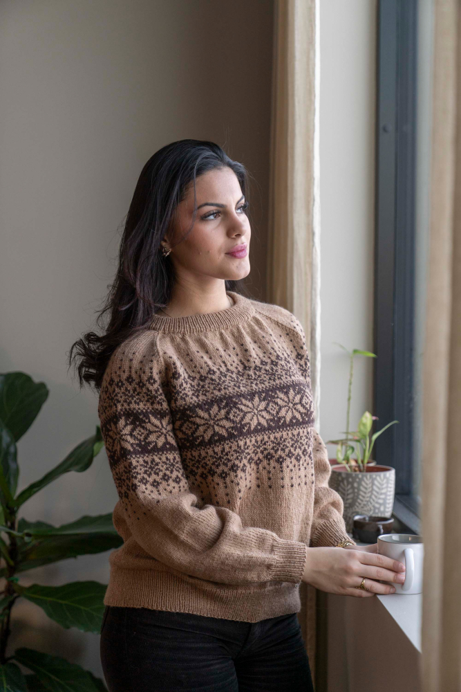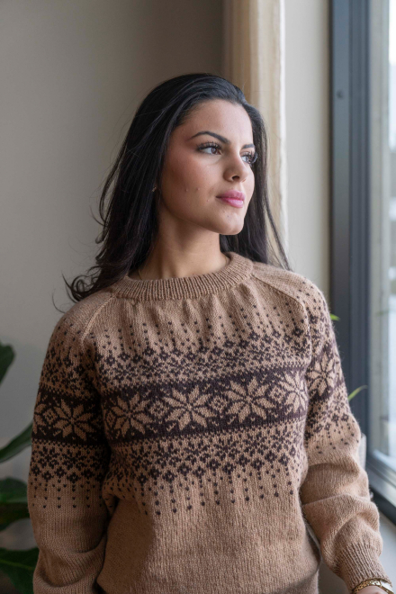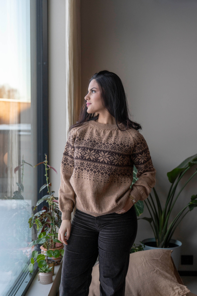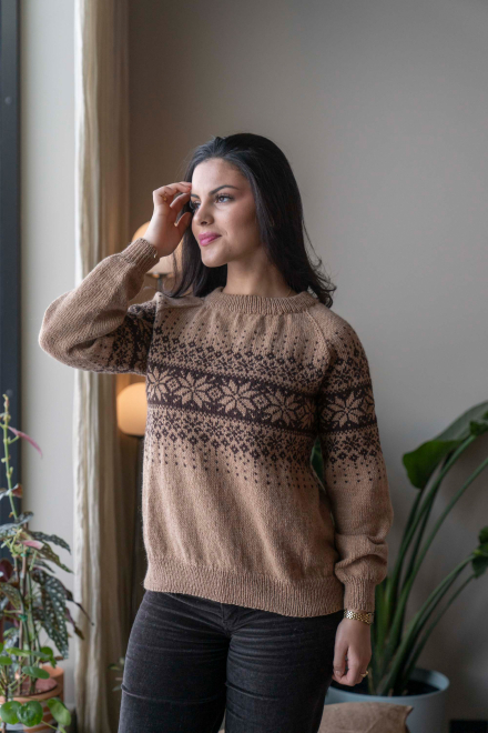 So finden Sie die passende Größe: Messen Sie ein Kleidungsstück aus, das Ihnen gut passt, und vergleichen Sie die Maße mit der Anleitung. Entscheiden Sie sich basierend auf der Brustweite des Rumpfteils für eine Größe. Die Länge des Rumpfteils sowie der Ärmel kann nach Belieben angepasst werden, aber denken Sie daran, zusätzliches Garn zu bestellen, wenn Sie die Länge verändern möchten!