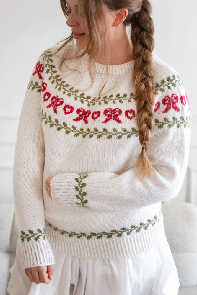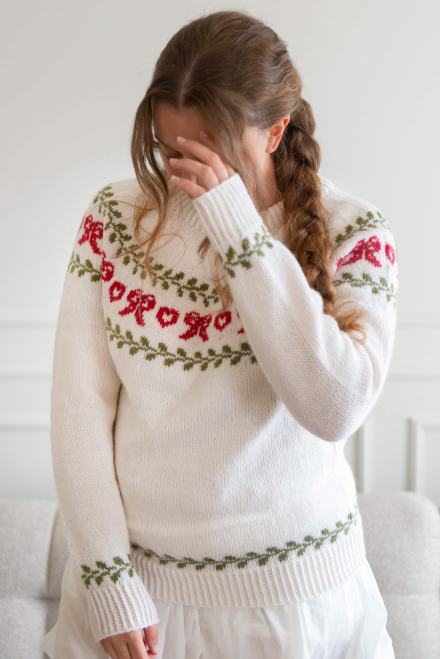 So finden Sie die passende Größe: Messen Sie ein Kleidungsstück aus, das Ihnen gut passt, und vergleichen Sie die Maße mit der Anleitung. Entscheiden Sie sich basierend auf der Brustweite des Rumpfteils für eine Größe. Die Länge des Rumpfteils sowie der Ärmel kann nach Belieben angepasst werden, aber denken Sie daran, zusätzliches Garn zu bestellen, wenn Sie die Länge verändern möchten!