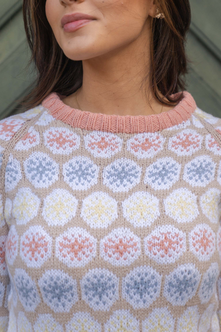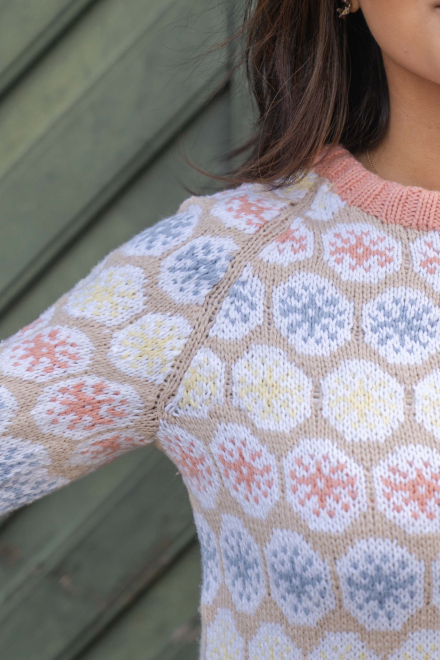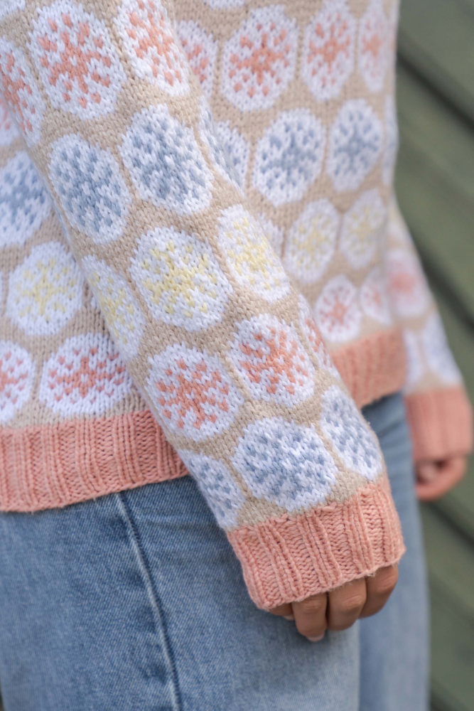 So finden Sie die passende Größe: Messen Sie ein Kleidungsstück aus, das Ihnen gut passt, und vergleichen Sie die Maße mit der Anleitung. Entscheiden Sie sich basierend auf der Brustweite des Rumpfteils für eine Größe. Die Länge des Rumpfteils sowie der Ärmel kann nach Belieben angepasst werden, aber denken Sie daran, zusätzliches Garn zu bestellen, wenn Sie die Länge verändern möchten!
