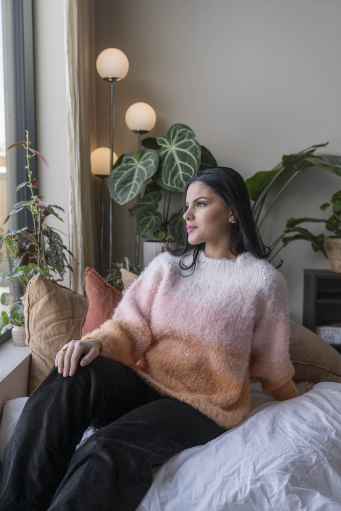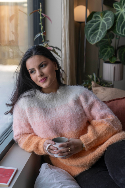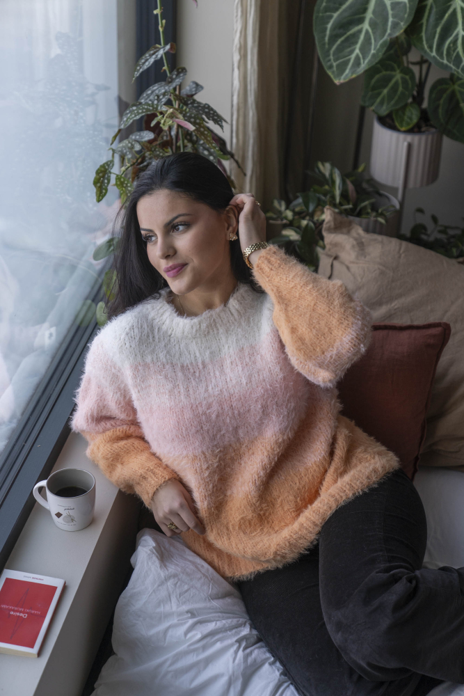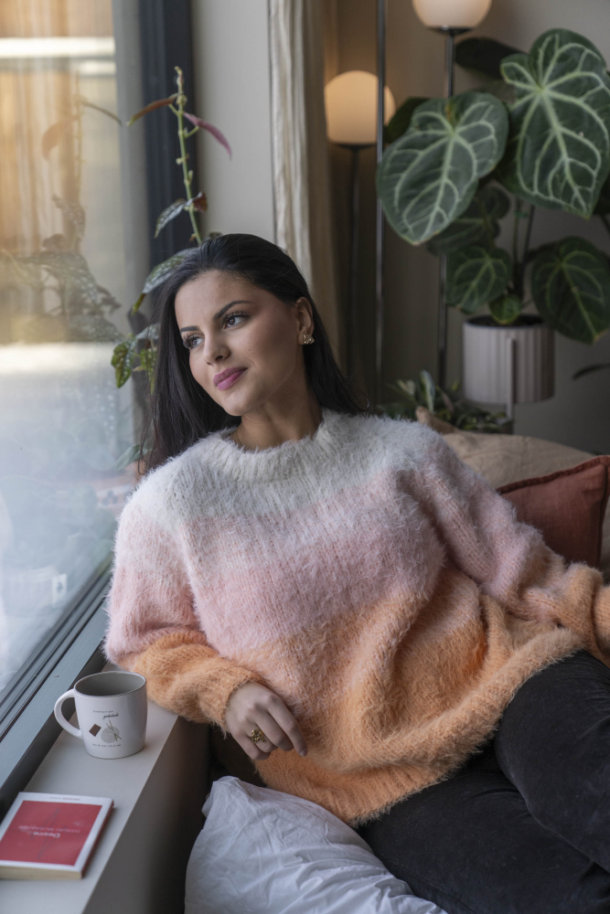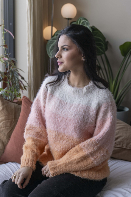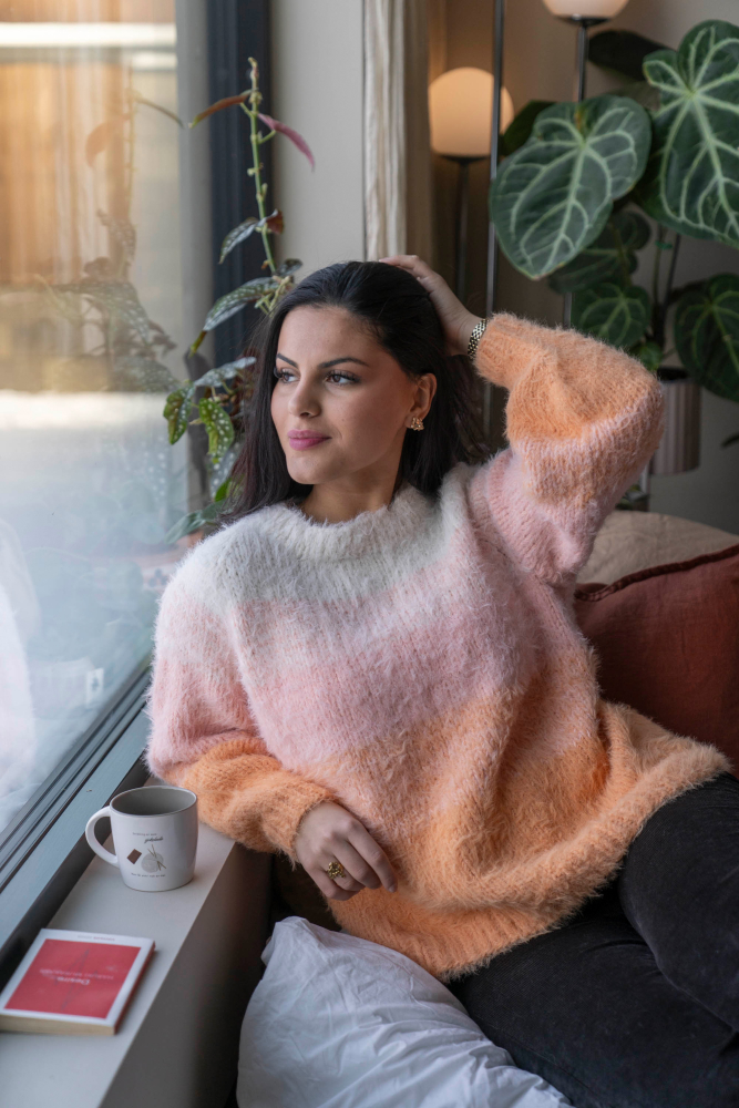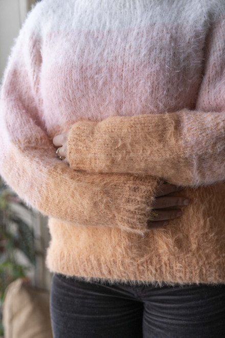 So finden Sie die passende Größe: Messen Sie ein Kleidungsstück aus, das Ihnen gut passt, und vergleichen Sie die Maße mit der Anleitung. Entscheiden Sie sich basierend auf der Brustweite des Rumpfteils für eine Größe. Die Länge des Rumpfteils sowie der Ärmel kann nach Belieben angepasst werden, aber denken Sie daran, zusätzliches Garn zu bestellen, wenn Sie die Länge verändern möchten!