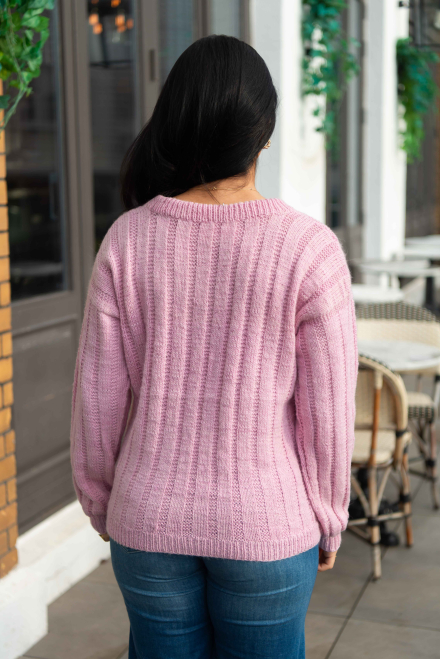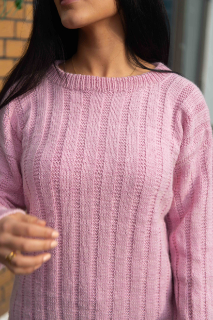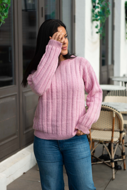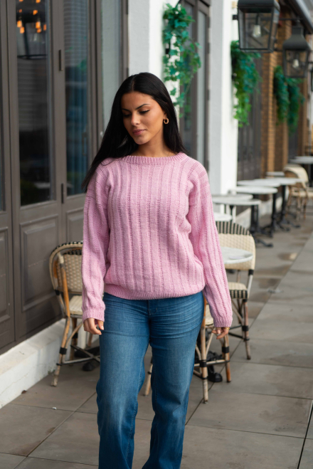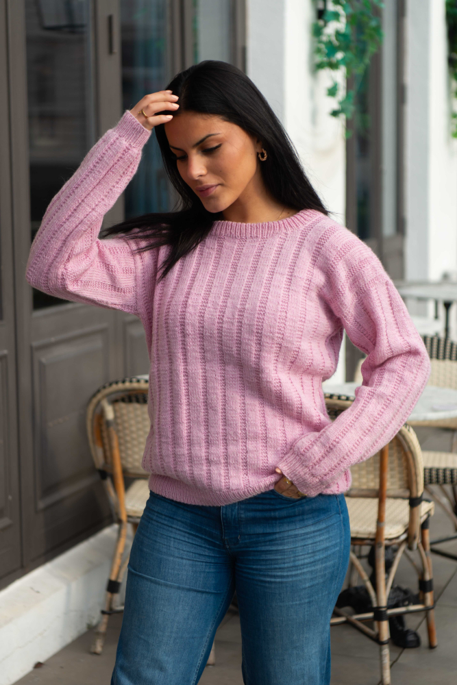 So finden Sie die passende Größe: Messen Sie ein Kleidungsstück aus, das Ihnen gut passt, und vergleichen Sie die Maße mit der Anleitung. Entscheiden Sie sich basierend auf der Brustweite des Rumpfteils für eine Größe. Die Länge des Rumpfteils sowie der Ärmel kann nach Belieben angepasst werden, aber denken Sie daran, zusätzliches Garn zu bestellen, wenn Sie die Länge verändern möchten!