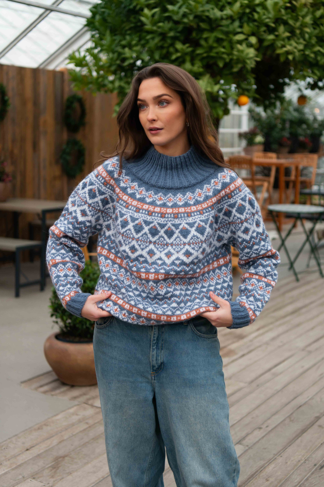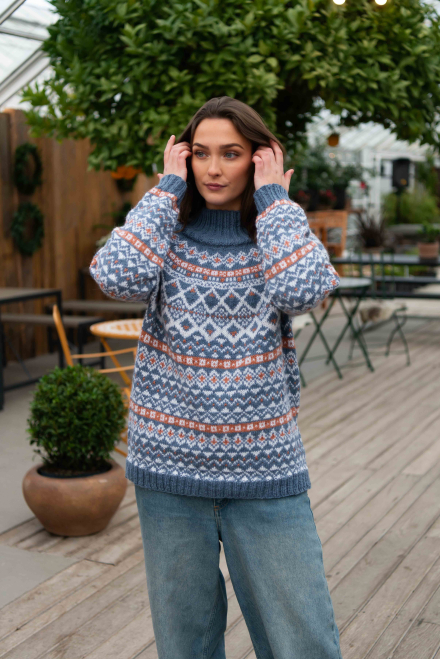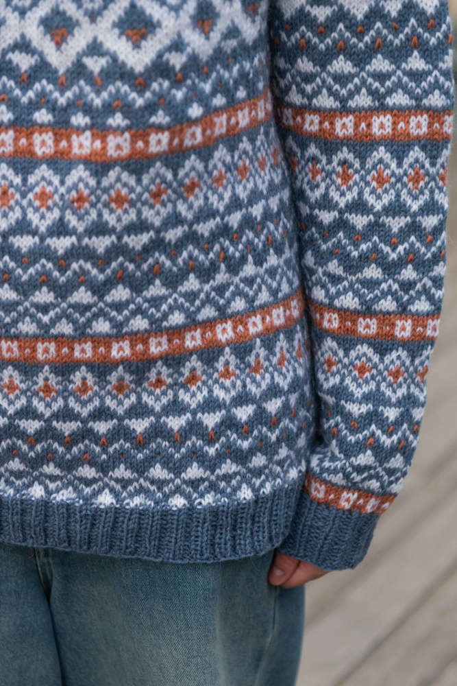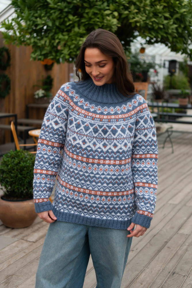 So finden Sie die passende Größe: Messen Sie ein Kleidungsstück aus, das Ihnen gut passt, und vergleichen Sie die Maße mit der Anleitung. Entscheiden Sie sich basierend auf der Brustweite des Rumpfteils für eine Größe. Die Länge des Rumpfteils sowie der Ärmel kann nach Belieben angepasst werden, aber denken Sie daran, zusätzliches Garn zu bestellen, wenn Sie die Länge verändern möchten!
