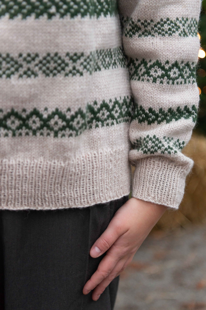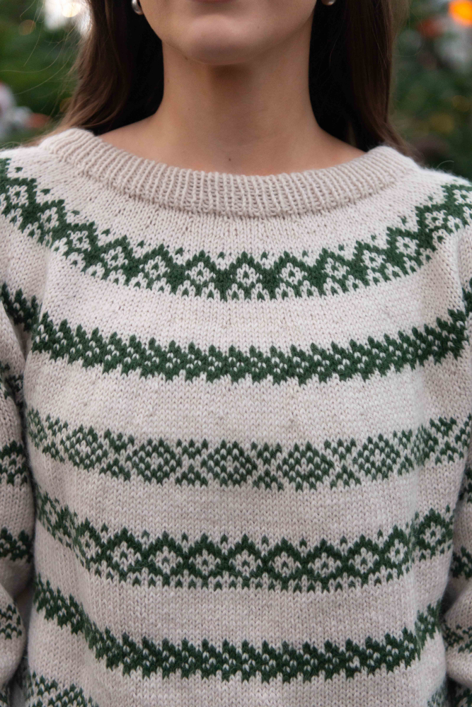 So finden Sie die passende Größe: Messen Sie ein Kleidungsstück aus, das Ihnen gut passt, und vergleichen Sie die Maße mit der Anleitung. Entscheiden Sie sich basierend auf der Brustweite des Rumpfteils für eine Größe. Die Länge des Rumpfteils sowie der Ärmel kann nach Belieben angepasst werden, aber denken Sie daran, zusätzliches Garn zu bestellen, wenn Sie die Länge verändern möchten!