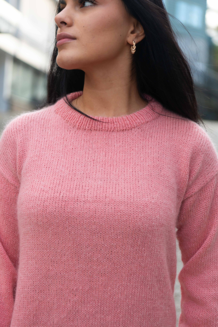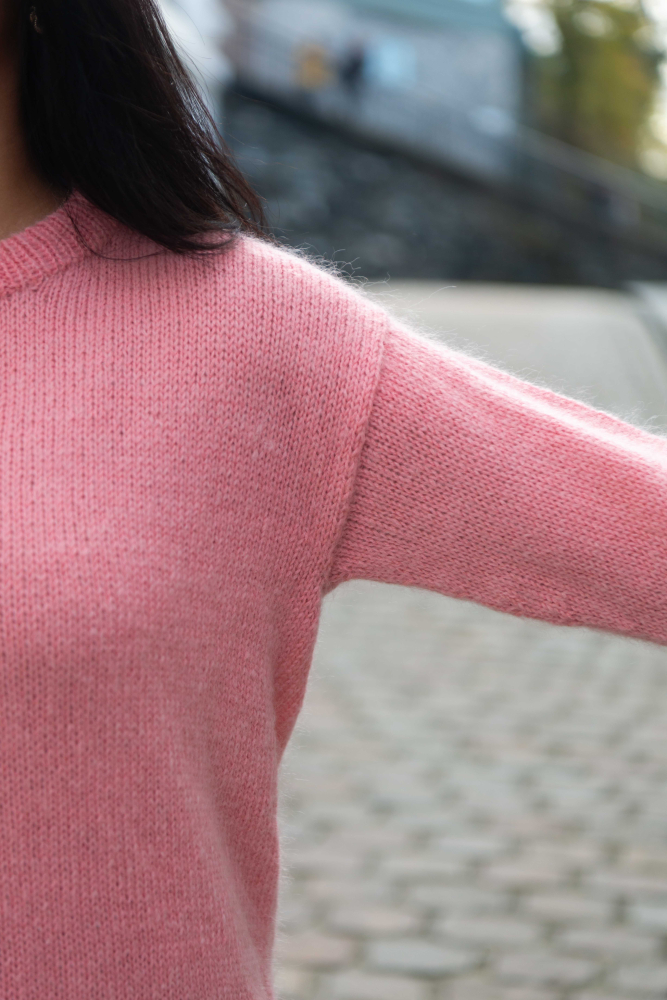 So finden Sie die passende Größe: Messen Sie ein Kleidungsstück aus, das Ihnen gut passt, und vergleichen Sie die Maße mit der Anleitung. Entscheiden Sie sich basierend auf der Brustweite des Rumpfteils für eine Größe. Die Länge des Rumpfteils sowie der Ärmel kann nach Belieben angepasst werden, aber denken Sie daran, zusätzliches Garn zu bestellen, wenn Sie die Länge verändern möchten!
