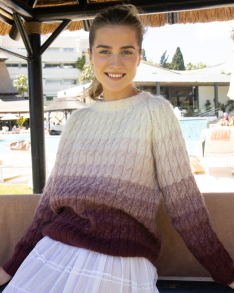 Tynn Kidsilk Erle ist ein luftiges, gebürstetes Mohair-Garn der Luxusklasse, das zu herrlichen, luftigen und weichen Kleidungsstücken verarbeitet werden kann. Verwenden Sie es entweder allein oder stricken Sie mit anderen Garnen zusammen, entweder einfach oder doppelt, als Mustereffekt zusammen mit einem rundgesponnenen Wollgarn oder Alpakka. Bitte beachten Sie: Bei der angegebenen Maschenprobe handelt sich lediglich um einen Richtwert. Je nach gewünschtem Ergebnis können Sie Tynn Kidsilk Erle mit dünneren oder dickeren Nadeln stricken.