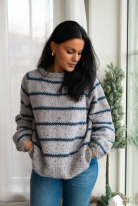 So finden Sie die passende Größe: Messen Sie ein Kleidungsstück aus, das Ihnen gut passt, und vergleichen Sie die Maße mit der Anleitung. Entscheiden Sie sich basierend auf der Brustweite des Rumpfteils für eine Größe. Die Länge des Rumpfteils sowie der Ärmel kann nach Belieben angepasst werden, aber denken Sie daran, zusätzliches Garn zu bestellen, wenn Sie die Länge verändern möchten!