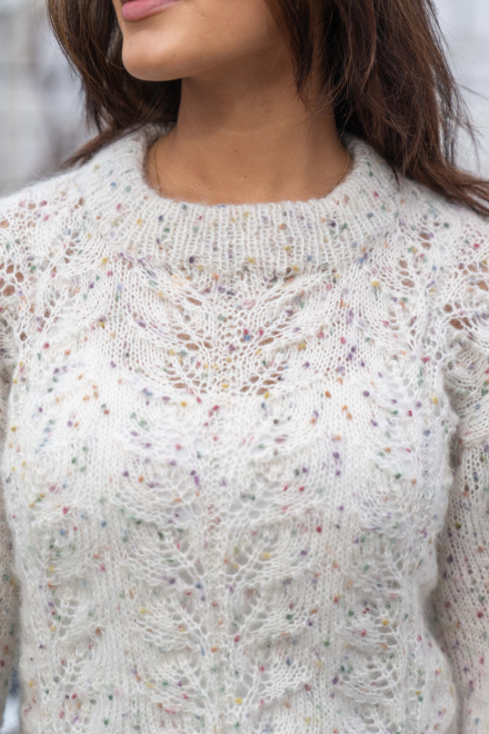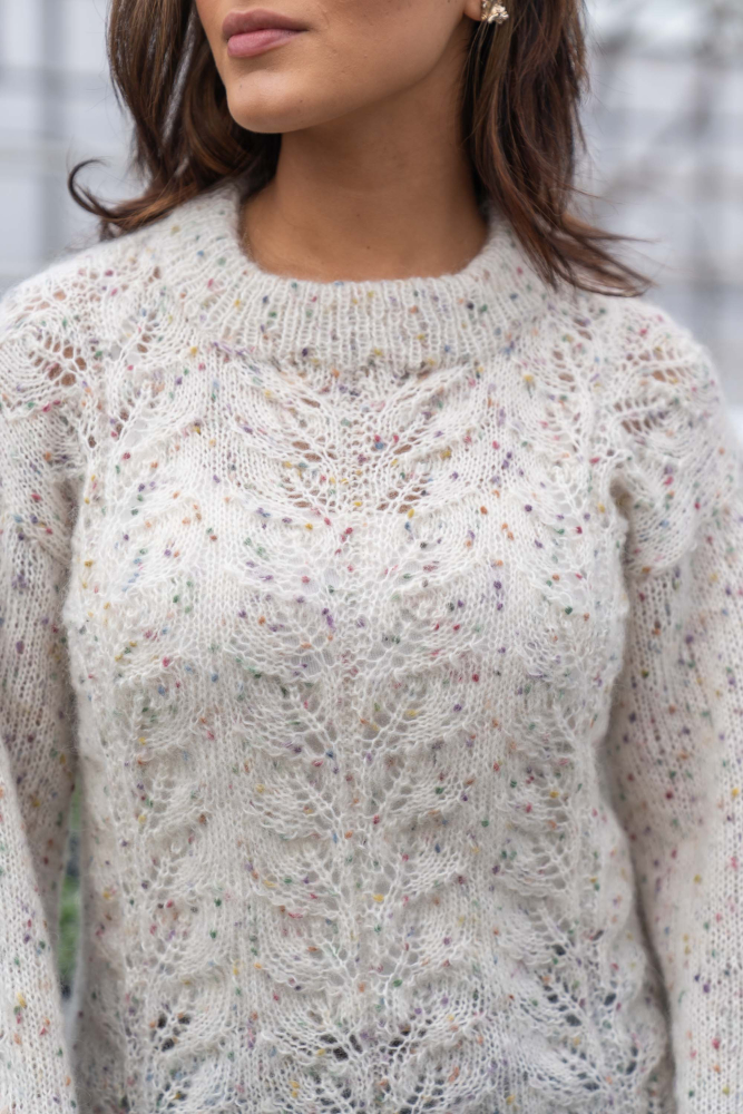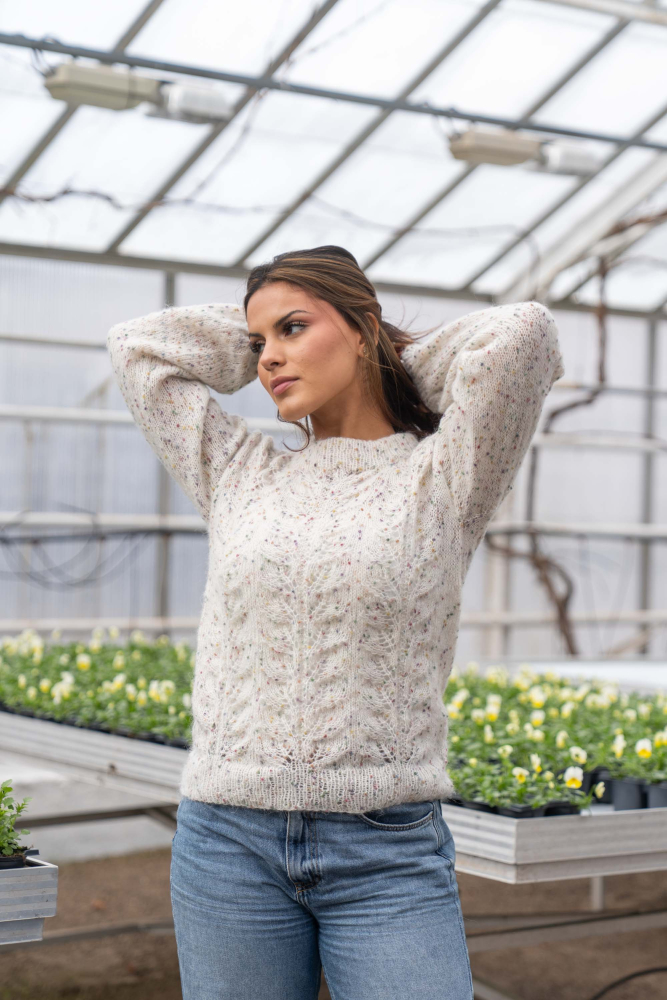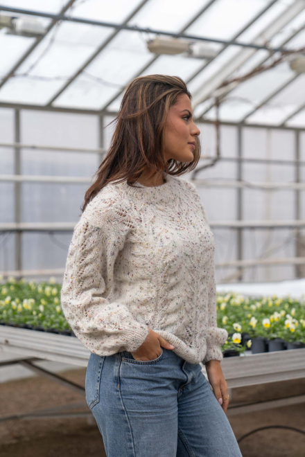 So finden Sie die passende Größe: Messen Sie ein Kleidungsstück aus, das Ihnen gut passt, und vergleichen Sie die Maße mit der Anleitung. Entscheiden Sie sich basierend auf der Brustweite des Rumpfteils für eine Größe. Die Länge des Rumpfteils sowie der Ärmel kann nach Belieben angepasst werden, aber denken Sie daran, zusätzliches Garn zu bestellen, wenn Sie die Länge verändern möchten!