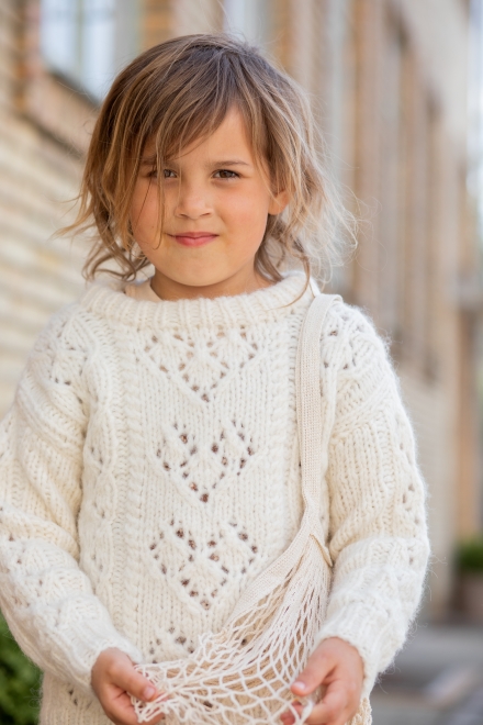 So finden Sie die passende Größe: Messen Sie ein Kleidungsstück aus, das Ihnen gut passt, und vergleichen Sie die Maße mit der Anleitung. Entscheiden Sie sich basierend auf der Brustweite des Rumpfteils für eine Größe. Die Länge des Rumpfteils sowie der Ärmel kann nach Belieben angepasst werden, aber denken Sie daran, zusätzliches Garn zu bestellen, wenn Sie die Länge verändern möchten!