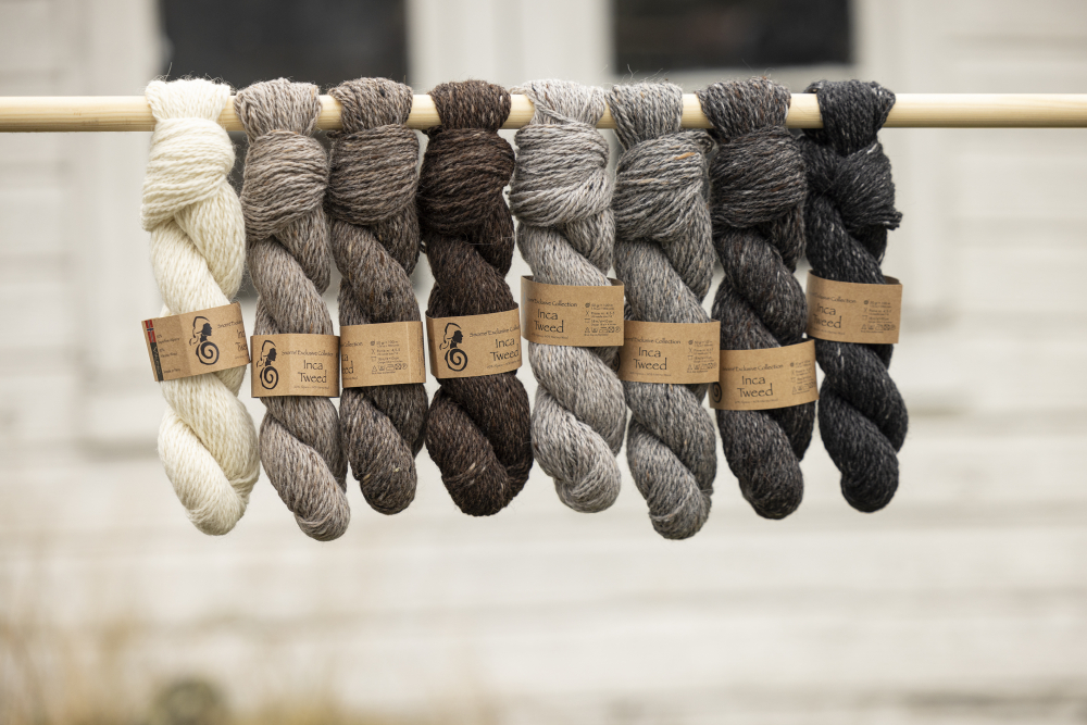Inca Tweed aus der Snorre Exclusive Collection ist ein weiches und luxuriöses Garn aus 60 % superfiner Alpaka und 40 % Merinowolle.