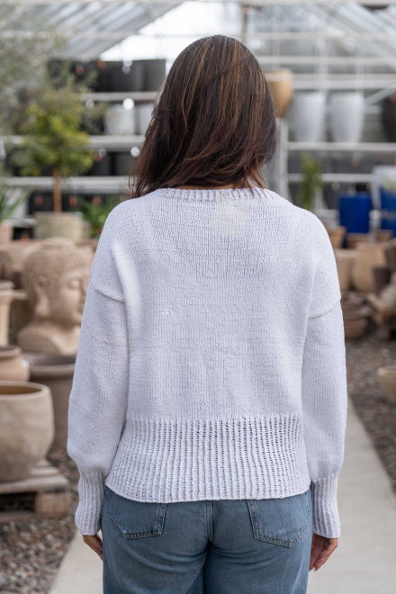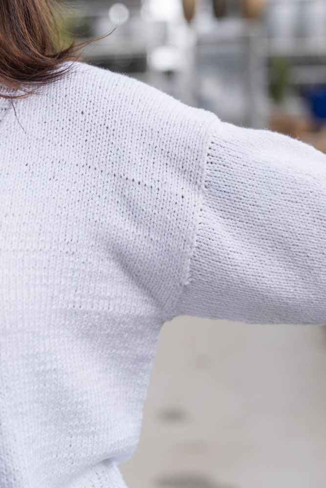 So finden Sie die passende Größe: Messen Sie ein Kleidungsstück aus, das Ihnen gut passt, und vergleichen Sie die Maße mit der Anleitung. Entscheiden Sie sich basierend auf der Brustweite des Rumpfteils für eine Größe. Die Länge des Rumpfteils sowie der Ärmel kann nach Belieben angepasst werden, aber denken Sie daran, zusätzliches Garn zu bestellen, wenn Sie die Länge verändern möchten!