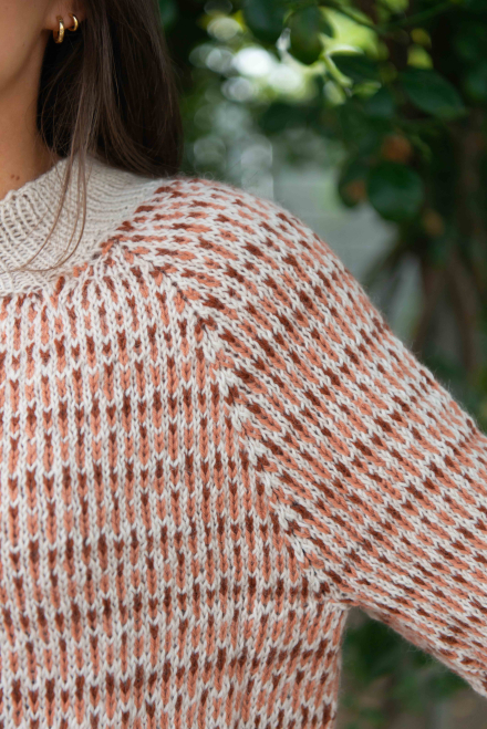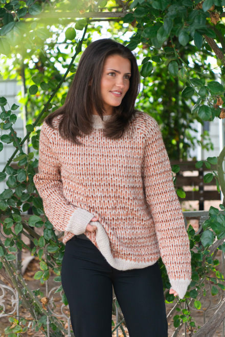 So finden Sie die passende Größe: Messen Sie ein Kleidungsstück aus, das Ihnen gut passt, und vergleichen Sie die Maße mit der Anleitung. Entscheiden Sie sich basierend auf der Brustweite des Rumpfteils für eine Größe. Die Länge des Rumpfteils sowie der Ärmel kann nach Belieben angepasst werden, aber denken Sie daran, zusätzliches Garn zu bestellen, wenn Sie die Länge verändern möchten!