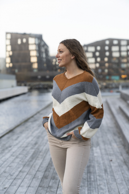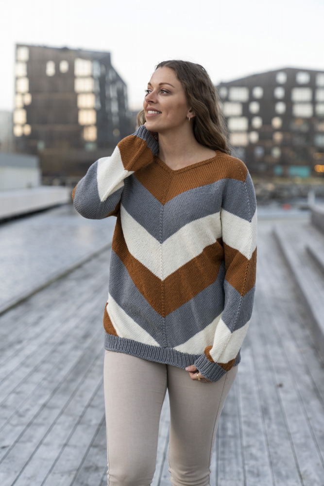 Alle vores strikkepakker indeholder mønster og komplet garnforbrug til ønsket størrelse, såfremt de angivne mål og strikkefasthed overholdes. Knapper og andet tilbehør skal købes separat.