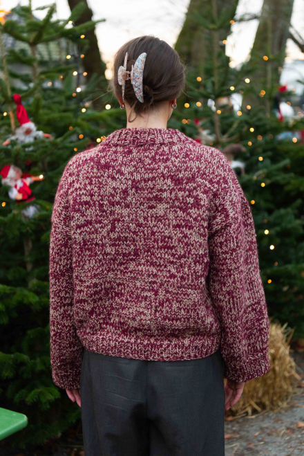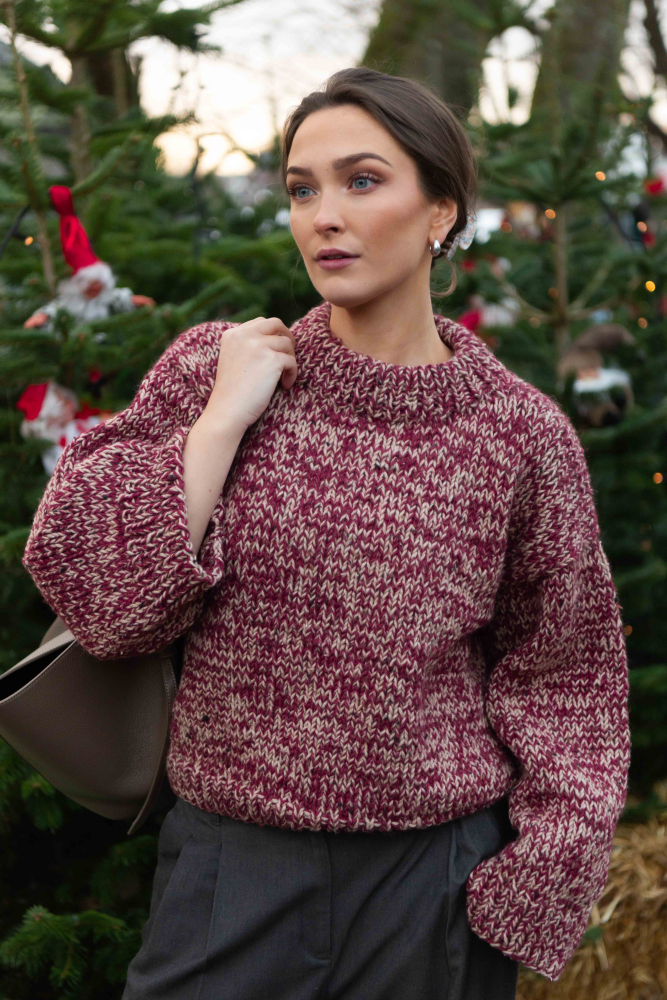 So finden Sie die passende Größe: Messen Sie ein Kleidungsstück aus, das Ihnen gut passt, und vergleichen Sie die Maße mit der Anleitung. Entscheiden Sie sich basierend auf der Brustweite des Rumpfteils für eine Größe. Die Länge des Rumpfteils sowie der Ärmel kann nach Belieben angepasst werden, aber denken Sie daran, zusätzliches Garn zu bestellen, wenn Sie die Länge verändern möchten!