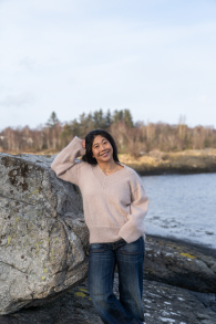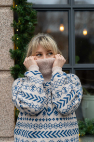 So finden Sie die passende Größe: Messen Sie ein Kleidungsstück aus, das Ihnen gut passt, und vergleichen Sie die Maße mit der Anleitung. Entscheiden Sie sich basierend auf der Brustweite des Vorderteils für eine Größe. Die Länge des Vorderteils sowie der Ärmel kann nach Belieben angepasst werden, aber denken Sie daran, zusätzliches Garn zu bestellen, wenn Sie die Länge verändern möchten!