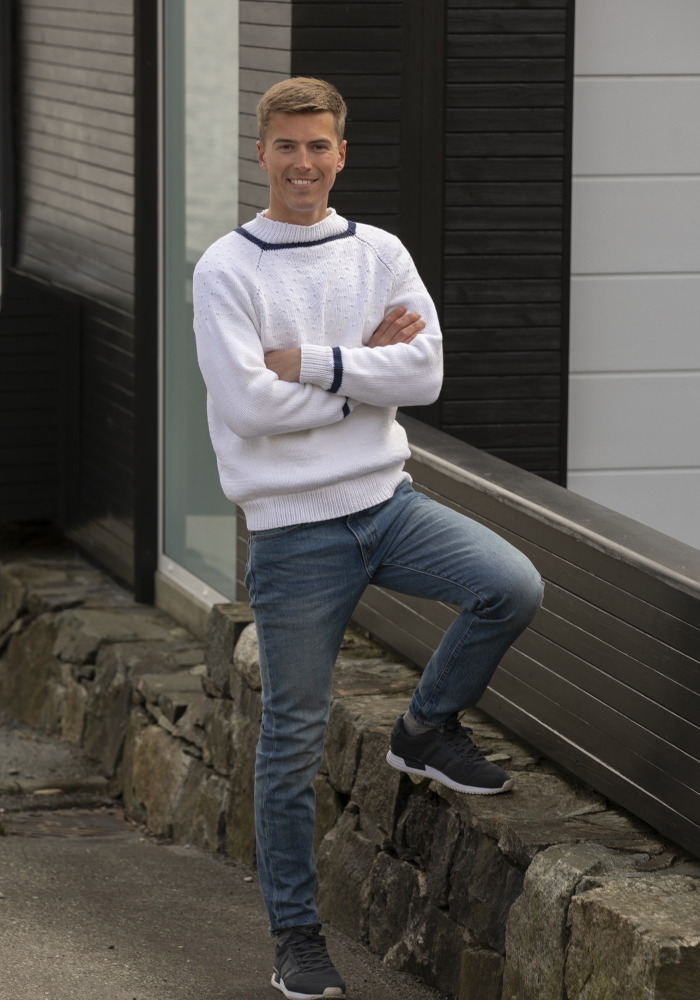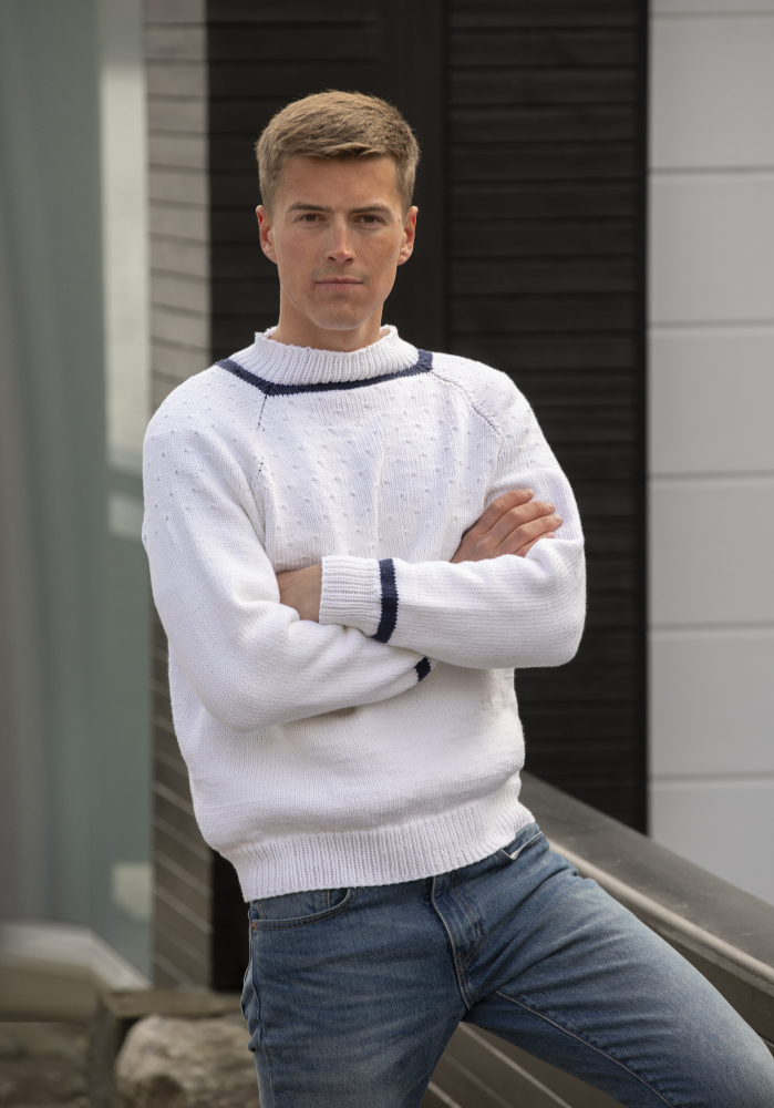 Du kan selv ændre farven på strikkepakken; vælg først den størrelse du vil strikke, så vises udvalget af farver herunder. Bemærk! Strikkeopskriften leveres altid i strikkepakkens originale farver: Hvid og Marine.